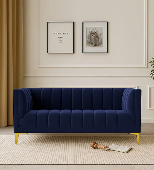 Lem Velvet 2 Seater Sofa in Navy Blue Colour