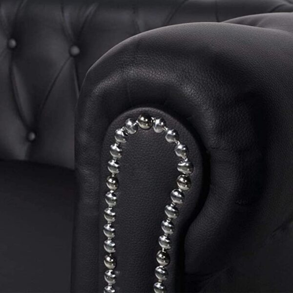 woodsfreak Wooden Furniture City Leatherate 2 Seater Chesterfield Sofa for Living Room & Office (Black)